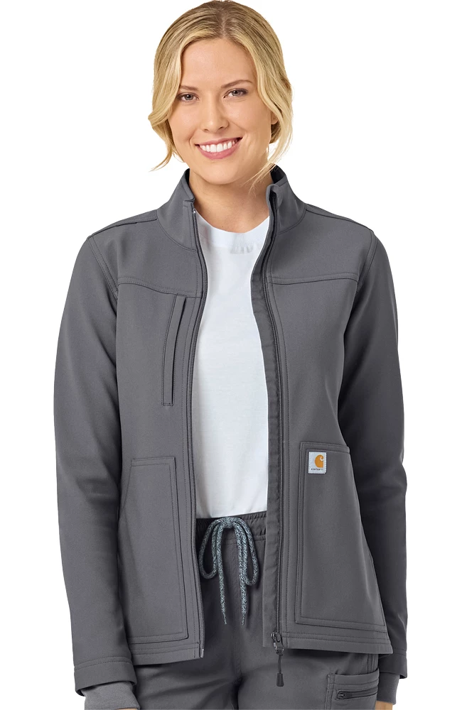 - Zip-front closure with chin guard and Carhartt logo zipper pull
