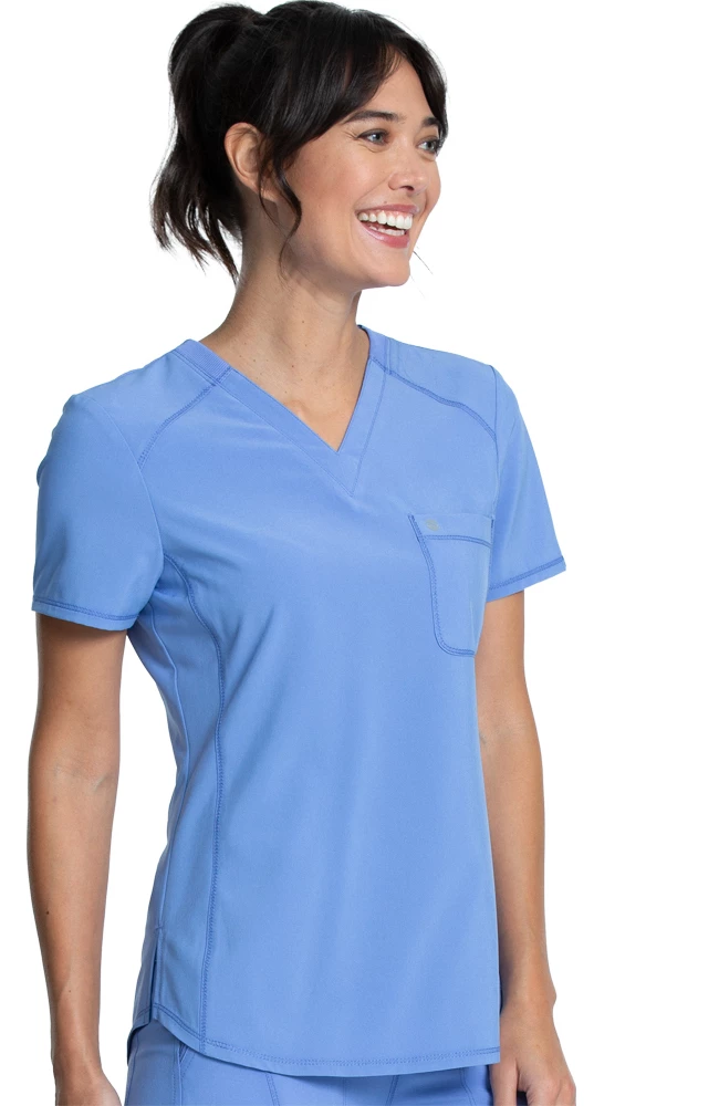The Infinity by Cherokee Women’s V-Neck Raglan Solid Scrub Top is a home-run look. Baseball and athletic inspired seaming creates a solid scrub top that improves your range of motion.