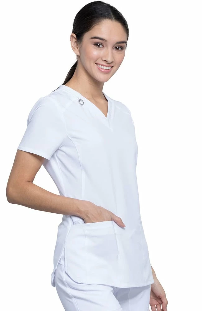 Get an ultra-flattering fit in the Infinity by Cherokee Women’s V-Neck Solid Scrub Top. The princess seams and curved hemline create a streamlined and elegant look that stands the test of time.