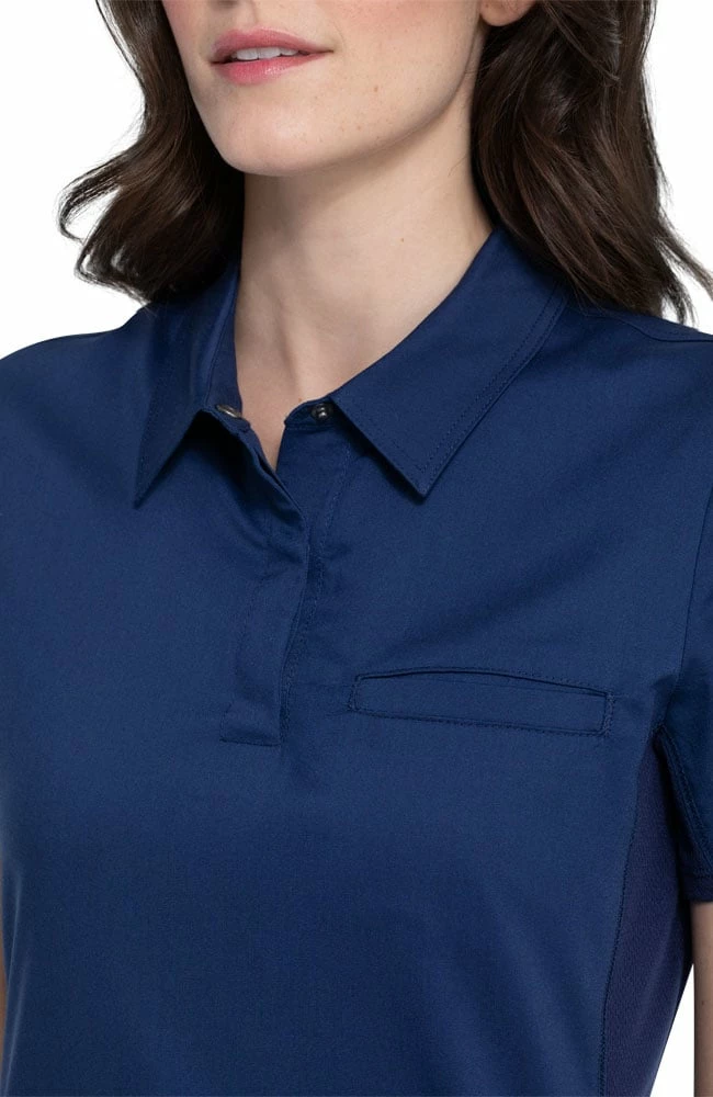 Get a wider range of movement and boost of breathability with the Revolution by Cherokee Workwear Women’s Snap Front Polo Top. A stand out from your typical workwear, this cutting design polo shirt design has breathable mesh panels at the sides and underneath the arms to keep you cool and dry.
