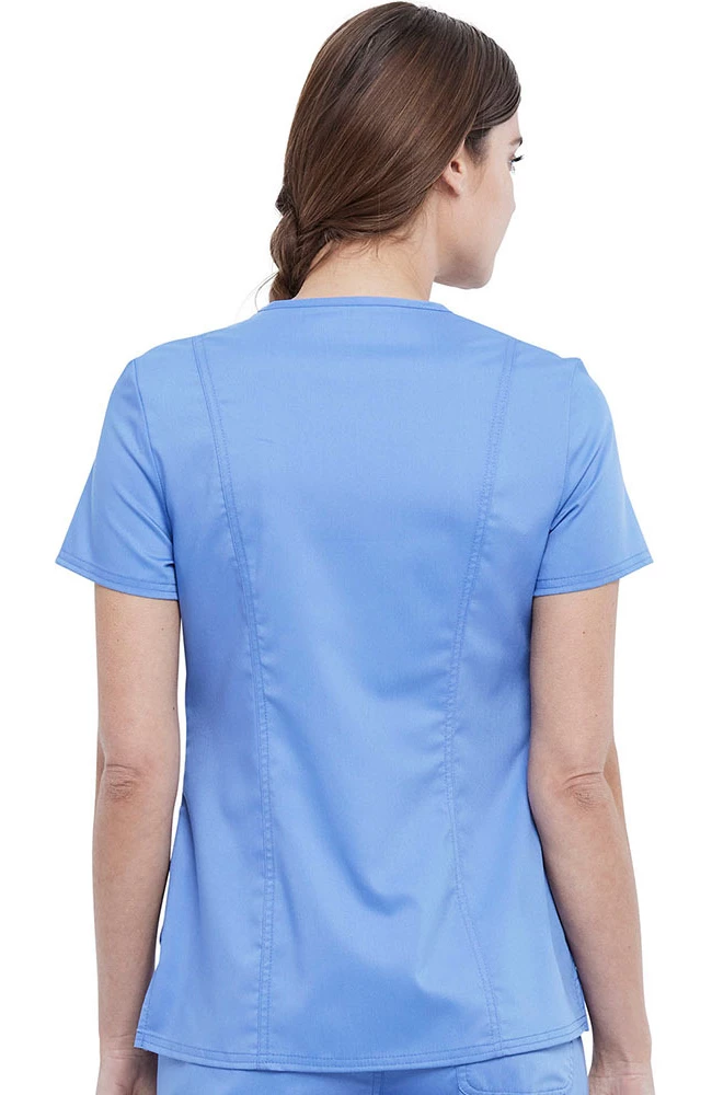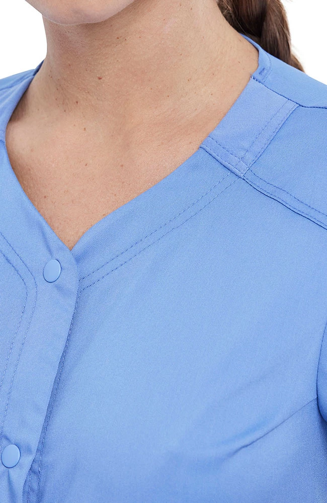 The Revolution by Cherokee Workwear Women’s Snap Front Solid Scrub Top is the perfect piece for quick changes. Easily adjust your scrub top with effortless snap buttons.