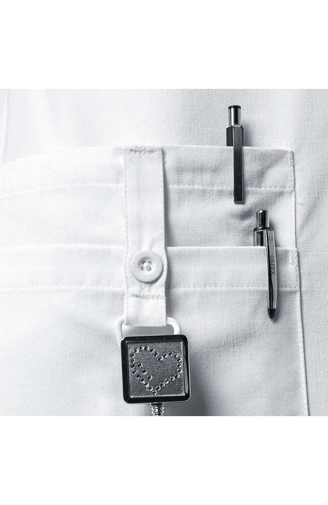 This lab coat from EDS Signature by Dickies features updated styling. It has a 3-quarter sleeve that can be folded up. The patch pockets include utility tape and D-ring.