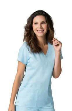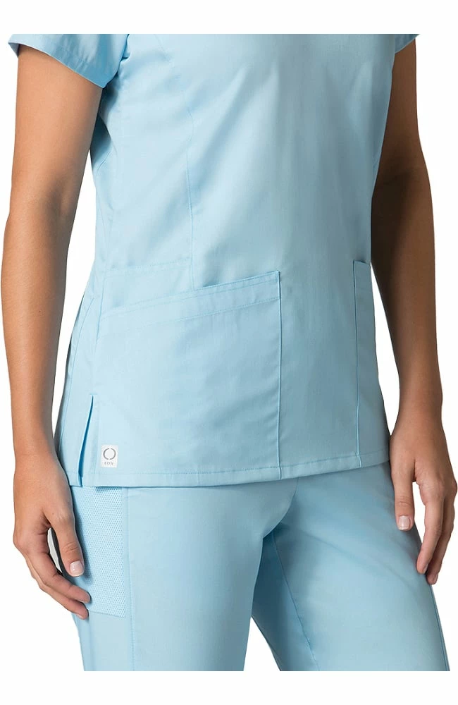 A mesh panel gives this EON Women’s COOLMAX® V-Neck Mesh Panel Solid Scrub Top a sporty look and feel. Front and back princess seaming contours your figure for a slimming silhouette.