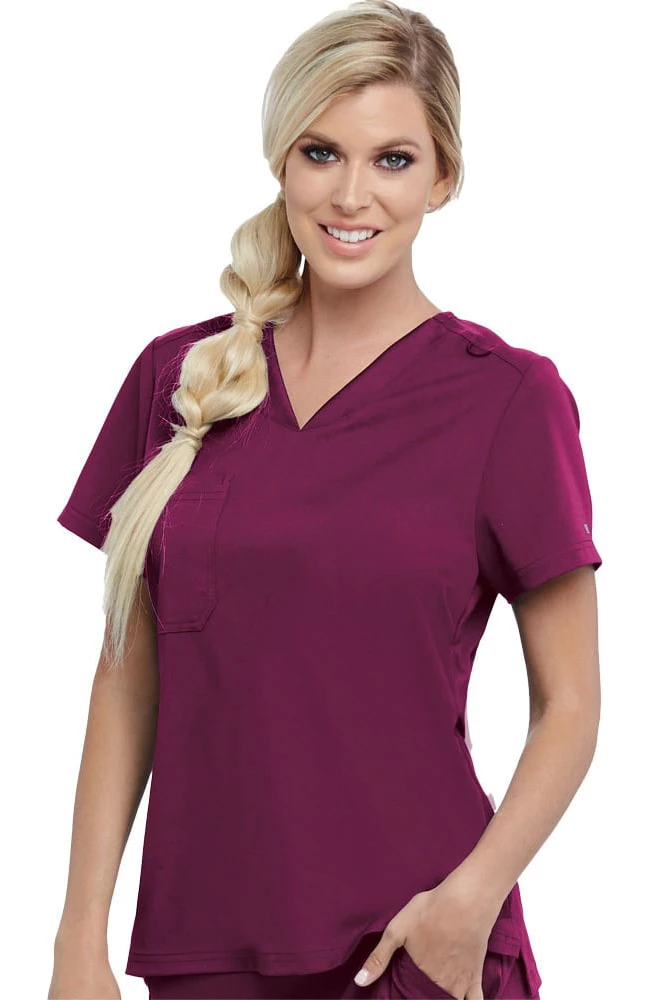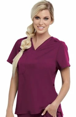 Enjoy the signature stretch fabric of the Spandex Stretch by Grey’s Anatomy Women’s Bree Tuck-In Solid Scrub Top. The medical scrub uniforms you have come to count on are now available in a tuck-in friendly style, to reduce excess bulk.