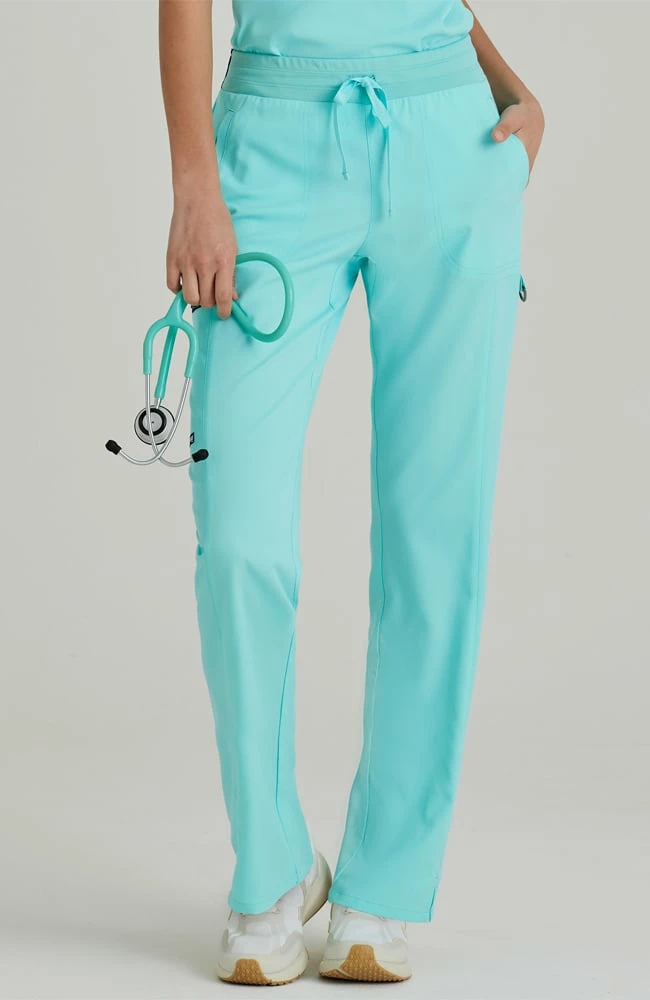 Designed to satisfy your competitive edge, the athletically-inspired Spandex Stretch by Grey’s Anatomy Women’s Kim Colorblock Scrub Pant is sure to add to your performance. Enjoy the sleek, subtle pockets, durable stretch fabric and bold colorblock statement.