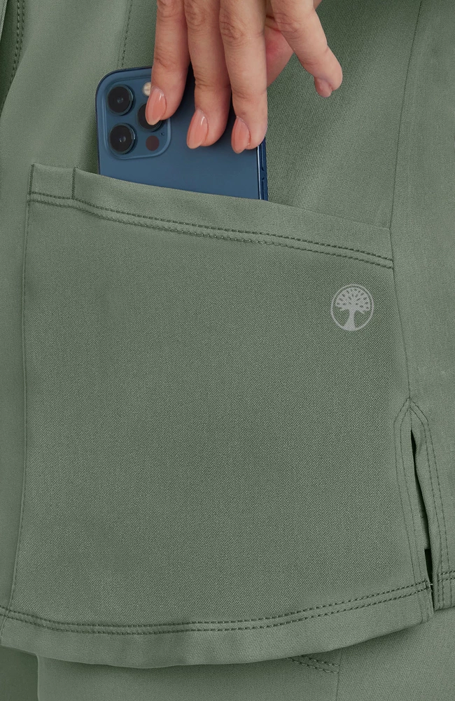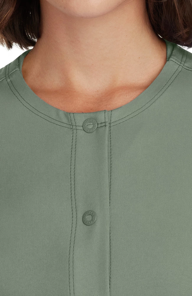 Get comfort and convenience from this HH Works by Healing Hands Women’s Megan Button Front Solid Scrub Jacket. Branded snaps add a polished touch to super easy-care fabric.