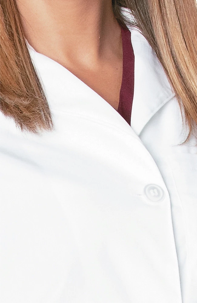 This Landau Women’s 3-Pocket Poplin 38″ Lab Coat has a fitted back and single-button belt. Multiple pockets store your tools throughout the day, while a back kick pleat allows for easy movement.