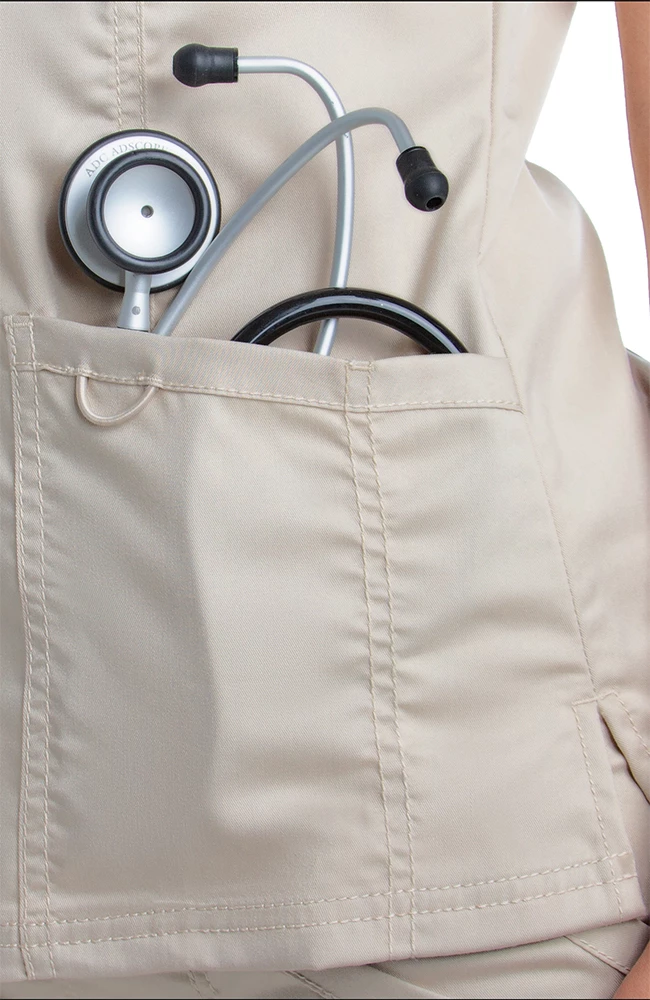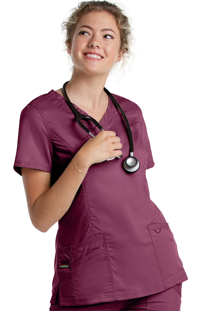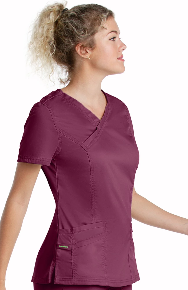 There are tons of flattering details on this ProFlex by Landau Women’s Mock Wrap Tunic Solid Scrub Top. Easy care fabric also offers two-way stretch and plenty of pocket space for added convenience.
