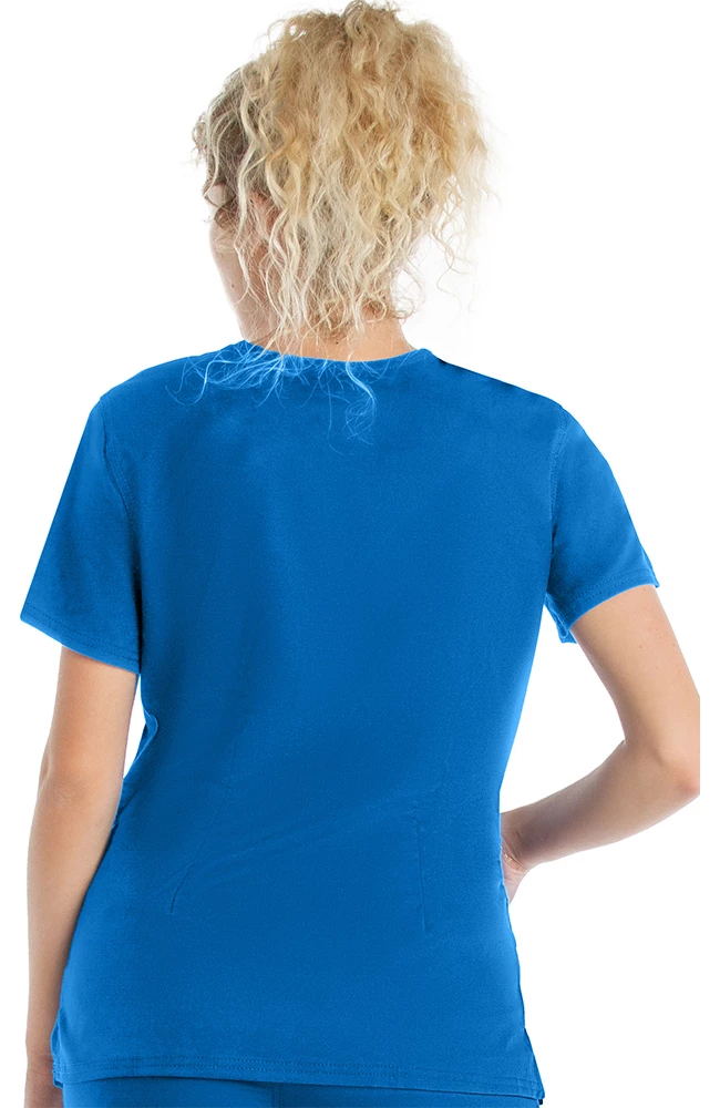 Naturally wrinkle-resistant fabric on the ProFlex by Landau Women’s Modern V-Neck Tunic Solid Scrub Top is made to suit your busy lifestyle. It’s also resistant to fading so your uniform looks bright and fresh, no matter your color code.