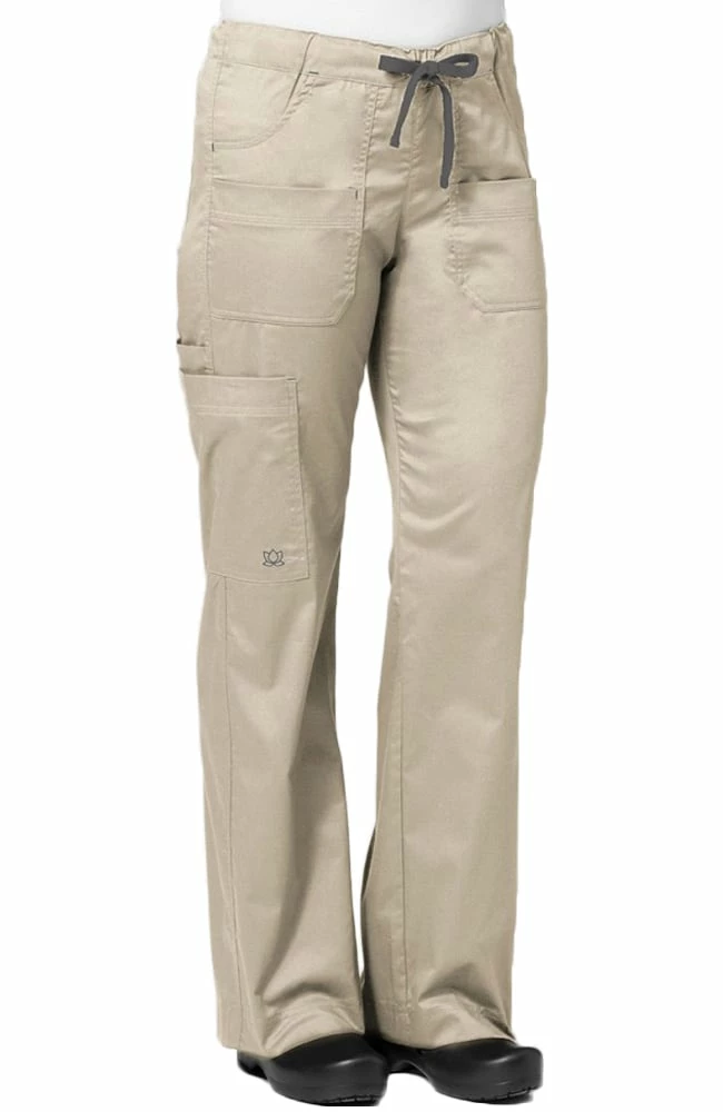 From Blossom by Maevn, these are cargo-styled scrubs with a place for everything. The 9202 boot cut scrub pant has a comfortable elastic waist with a front drawstring for perfect fit. They were designed to handle the wear and tear of an active work environment with triple stitching at the side seams and pockets and contrast bartacking at all pressure points. The two front patch pockets have attached utility pockets. The cargo pocket on the right leg has an inner smart phone pocket that keeps your mobile device in easy reach. The fabric is a cotton / poly / spandex blend that is brushed on both sides for softness and comfort. The inseam is 31″.