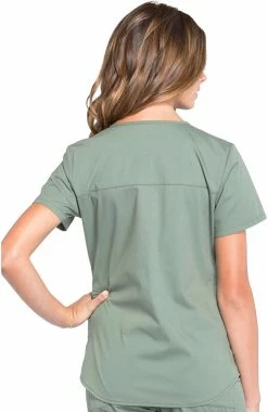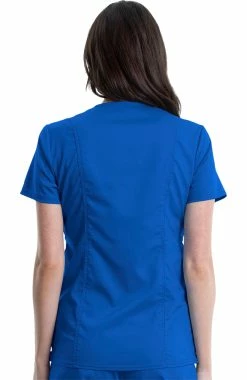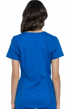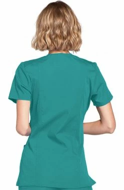 Cherokee Workwear Women’s Mock Wrap Princess Seam Solid Scrub Top