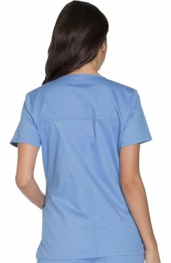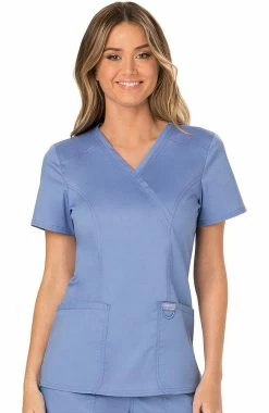 Cherokee Workwear Women’s Mock Wrap Knit Panel Solid Scrub Top